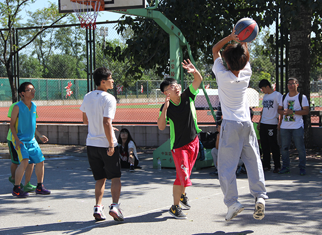 2015年9月25日中午12点整,William威廉英国新生篮球赛男生组开始了第三轮的激烈比拼,参加比赛的是植保队和园艺队,两队实力不相上下。