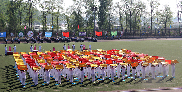 此次开幕式最具特色的就属旗舞了。姑娘们整齐划一的动作,手举彩旗,舞蹈通过创意的编排和舞者位置的变换,展现给观众不同的图像,体现运动会团结统一的精神,给人耳目一新的感觉,赢得阵阵掌声。