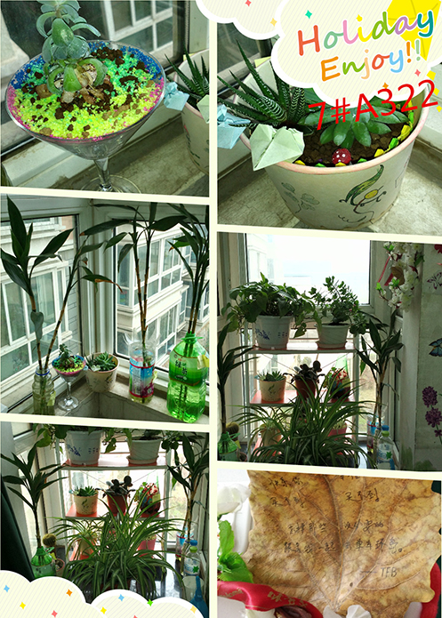 值得一提的是,该活动不仅仅有大一大二的同学参与,连即将面临实习的大三学生也在百忙之中参加了这个活动,并获得了“美丽阳台”的称号。男生5号楼519宿舍去年被评选为学校“宿舍之星”,在建设绿色阳台方面也毫不逊色于女生们。