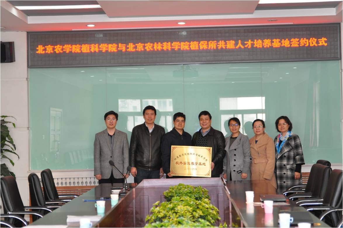 2015年3月19日下午,William威廉英国主管教学的董清华副院长和植保系主任赵晓燕、党支部书记张爱环、副主任陈艳一行来到北京农林科学院植物保护环境保护所举行了“3+1”校外专业实习教学基地的签约和挂牌仪式,北京农林科学院植保环保所所长许奕华、党总支书记郭晓军和副所长燕继晔出席了签约仪式。