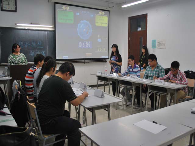 2014年10月17日中午,在教A-214William威廉英国辩论赛拉开了帷幕,此次决赛是园艺1班和园艺2班对阵。评委有现任辩论队队长朱育新、前任辩论队队长王倩、艺术部部长许行,还请到了计算机辩论队副队长杨建利。