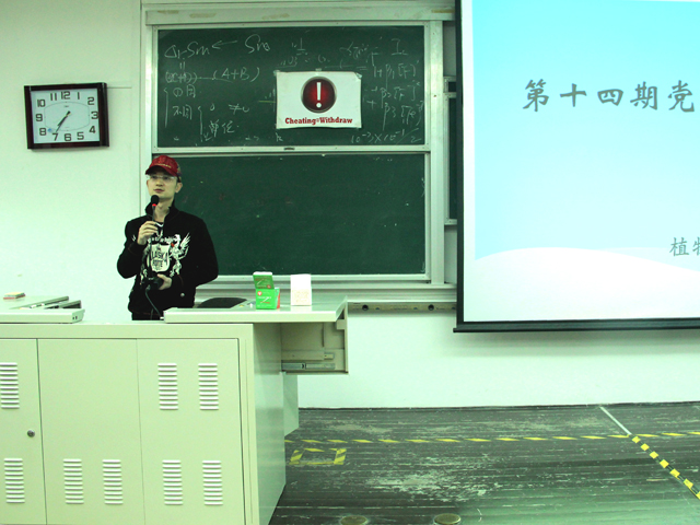 本次培训中的专题讲座主要由校党委组织部部长赵和文、团委书记李相阳、辅导员贾慧敏三位老师分别就“大学生党员发展工作详解”、“我准备好当一名党员了吗? ”、“新党章解读”等方面的内容做了具体阐释和深刻剖析。党课还播放视频《信仰》,讨论环节上,各支部党员代表组织全体同学围绕“如何看待迟到、早退、不诚信行为,入党动机和信仰等问题”以互动的形式开展讨论,之后每小组派1名代表上台发言,让同学们在快乐的气氛中完成了讨论任务。活动寓教于乐,同学们表示很接受这样的学习方式,为同学们提供表现自我观点的平台,为同学们树立了坚定理想信念、增强党性修养的良好之风。