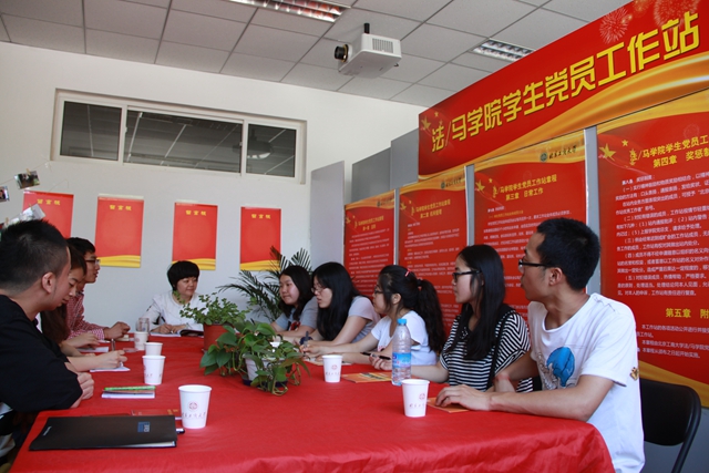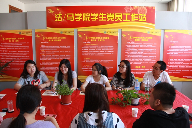 随后,北京工商大学法/马学院学生党员工作站副站长向我们介绍了法/马学院学生党员工作站的主要工作任务。其党员工作站成员代表介绍了法/马学院党员工作站的特色活动,如长辛店普法活动、法硕专业人才素质培养系列讲座、党员工作站APP应用等。我院党支部代表对北京工商大学法/马学院学生党员工作站的工作模式的创新给予赞赏,同时,也讲到我院党员工作站是以专业负责各宿舍楼来展开的,每个宿舍楼均设有分站,并委任党支部党员作为分站站长。法/马学院文书记对我院的做法给予肯定。此外,双方就学生逃课问题以及少数民族学生的信仰与管理问题、党员各方面意见调查和推优资格等问题进行了交流讨论。