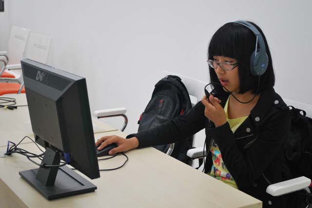 12:00紧张的口语考试开始了,同学们纷纷戴好耳机,全神贯注于考试题目上,不一会儿,一句句流利的英语从同学们的口中流出。为了有一个好的成绩,同学们一遍又一遍的朗读着句子,争取在有限的时间里发挥出自己最好的水平。