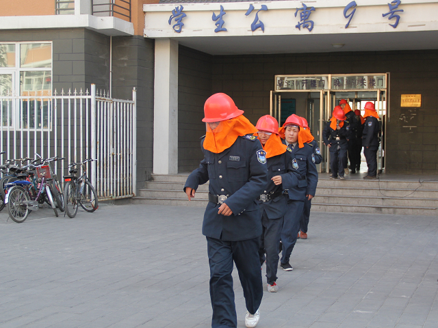 为切实加强校园消防安全管理,增强师生消防安全意识和逃生能力,11月22日12:30,我校于9号学生公寓楼开展了消防演练活动。纪委书记张铁强,办公室主任华玉武,学生处副处长刘柳、郭玉刚,保卫处处长张国柱莅临现场指导。