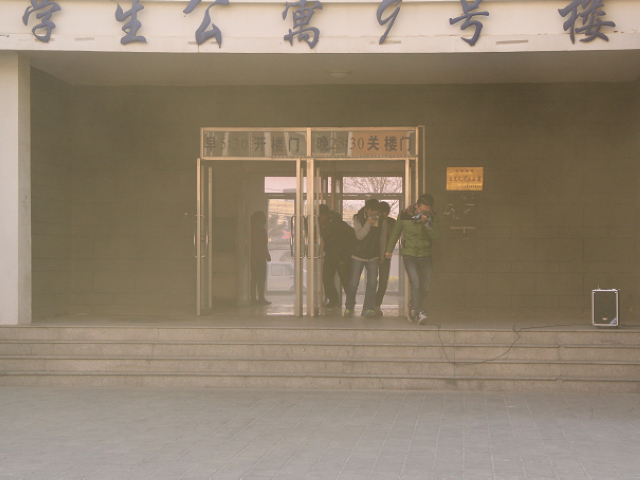 随着总指挥张铁强书记的一声令下,我校9号楼燃放了烟雾弹,霎时烟雾弥漫,同学们通过自己平日积累的消防知识,有秩序的不断从“失火”的楼道中奔出,大家用毛巾捂住口鼻,采取弯腰、低姿的方式迅速逃离到安全区域,逃离过程中同学们表现沉着、冷静。与此同时,我校消防队和医疗队迅速就位,进行了灭火技能及紧急救援。