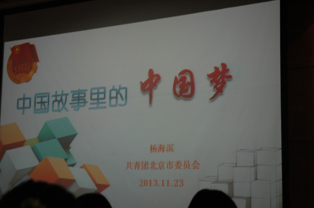 上午9:00,共青团北京市委副书记杨海滨为大家带来“中国故事里的中国梦”,其中世界地图的故事鼓励大家勇于实现伟大的中国梦;《共产党宣言》陈望道的故事给人以追求信仰的执着;“待漏院记”的故事鼓励大家要做国家的贤臣,不做佞臣和庸臣;河南艾滋病村魏华的故事鼓励大家追求信仰。杨书记为大家讲述大量了鲜活的例子,鼓励大家勇于追求自己的梦想、实现伟大的中国梦。下午14:00,中国人民大学马克思主义学院耿化敏教授为大家解读党的十八届三中全会会议精神。