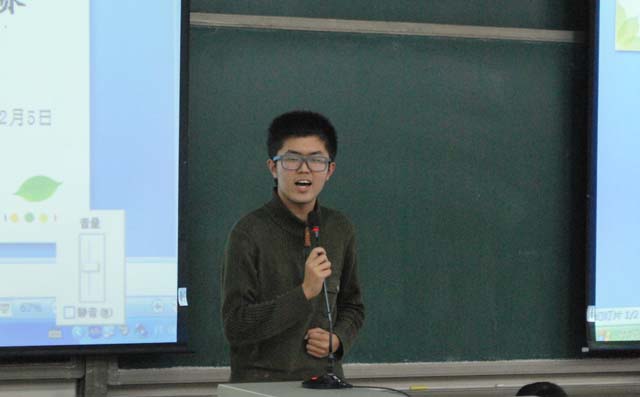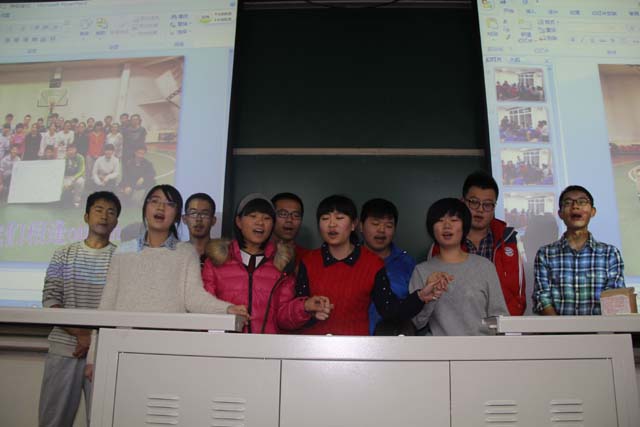 本次活动共有大一、大二、大三17个班级参赛,每班10人演唱班歌,一名代表讲解班徽,展现本班特色。