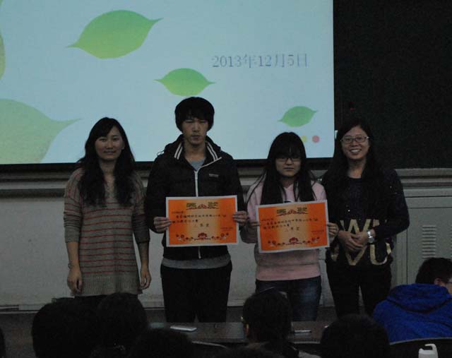 郝老师与苑老师为获得一、二等奖的班级颁发奖状,团总支副书记马天卉与学生会主席李银鸽同学为三等奖班级颁奖。