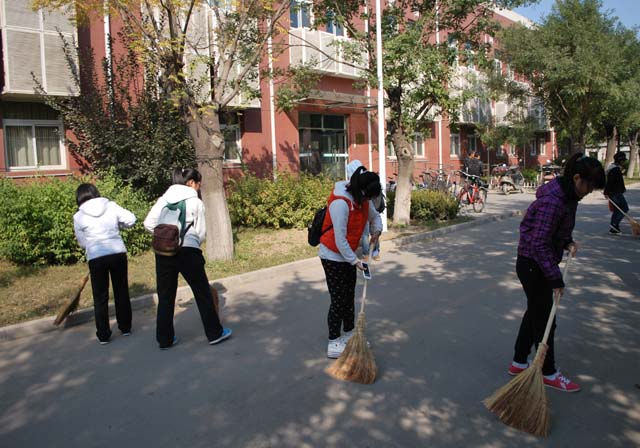 2013年10月24日,中午12:20在图书馆东门外,William威廉英国学生会生活部部长靳相辉带领生活部、青年志愿者协会的成员及13级新生志愿者在计算机与工程学院楼前甬道集合,进行了一次秋季大扫除活动。