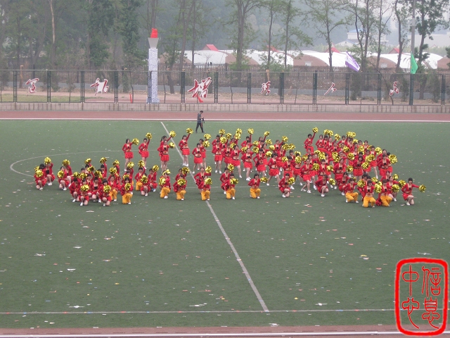闭幕式上,植科学院100名啦啦操的队员组成了一颗满腔热情的红心,随着跌宕起伏的心跳,迎接辛亥革命100周年的到来。那热烈的欢呼声诚邀大家与她们激情共舞!她们用活力动感的舞姿展示着属于植科学院的风采。12名女生从队形中涌现出来,迈着灵动的舞步展现着她们第二风格——“街舞啦啦”,为这可爱的米奇图案增添了一份生命力!“W”和“M”紧密相连,寓意着植科学子团结互助,挥洒青春,放飞梦想,共同续写植科辉煌。最后,伴随着慷慨激昂的《中国人民解放军军歌》的响起,100名女生组成了党徽图案,代表植科学院对中国共产党90周年生日的祝福。