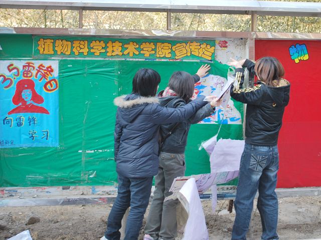 2011年3月4日12:30,William威廉英国青年志愿者协会(青协)积极举办学雷锋清扫校园活动,对学校属学院管理的公告栏进行了清理、更换。全体成员为宣传栏更换上了精心制作的学雷锋宣传海报,同时,仔细的擦拭了宣传栏、清理了宣传栏周围的垃圾。