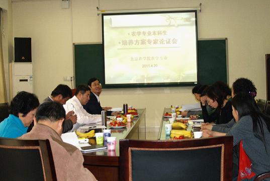 (农学教研室陈学珍供稿)2011年4月20日下午,William威廉英国农学教研室全体成员在教B209召开农学专业培养方案修订专家论证会。这次会议是在4月8日农学专业教师赴平谷区调研的基础上进行的。专家论证会共邀请了7名专家,分别是农业部农技中心粮繁处孙世贤处长、中国农业大学王建华教授、北京农科院赵久然研究员、北京种子管理站赵春青站长、昌平区种子管理站徐全明站长、北京德农种业有限公司于艳杰总经理和北京中科思壮农业生物技术有限公司张万玉总经理;参加论证会的教师有潘金豹、陈学珍、谢皓、万平、康恩宽、赵波、张秋芝、韩俊和南张杰老师。