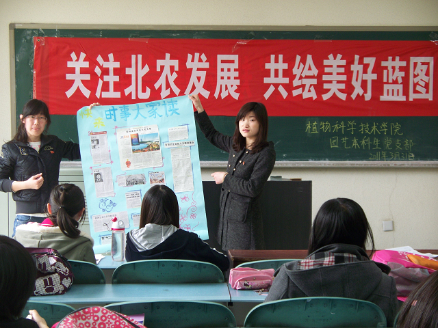 为响应学校“十二五”规划编制工作小组起草的《williamhill“十二五”发展规划(征求意见稿)》文件,3月31日12:30,William威廉英国园艺本科生党支部在教B106开展“关注北农发展共绘美好蓝图——我为‘十二五’规划建言献策”主题党日活动,会议由张健同学主持。