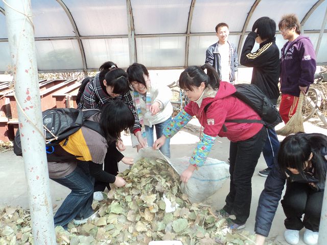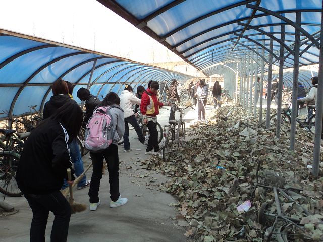为感谢北京市慈善协会对我校学生的资助,让“爱心成就未来”的主题更加融入到学生的生活、学习中,曾经受资助的植科、动科、园林三个学院共计100多名学生组织了一次感恩回馈校园师生的活动。2011年3月23日中午12:30,同学们自发地组织打扫5、6号楼前的车棚,他们希望通过自己的行动能够为同学们带来便利,奉献自己的一份力,传递爱心。