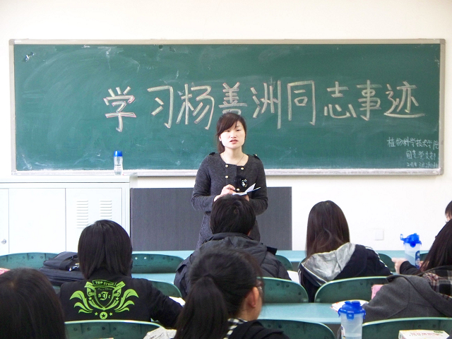 党支部书记刘莹说:“从小就被曾一代代英雄模范、先进人物激励过的我们,今天再次看到杨善洲的先进事迹时,很快就被他大爱一生的事迹所打动。作为一名毕业生,我将选择从事本专业的工作,为京郊新农村的建设发展贡献自己一份力量。”