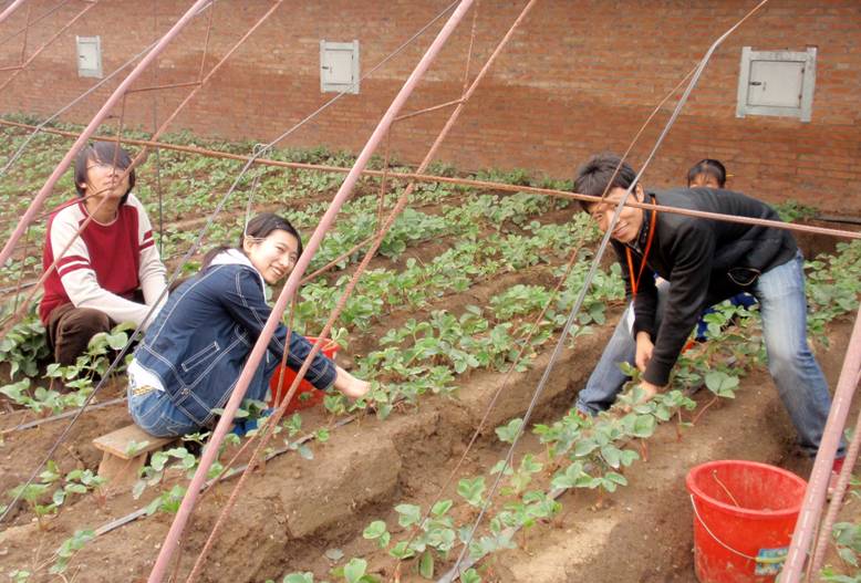 植科学院农学专业农作物经营管理班是我校推行3+1模式的实验班,即3年在校学习,1年在校外实习基地实践学习。在实践环节上,上两届学生采用分散到多个校外实习基地实习的模式,虽然达到了实践教学的目的,但是由于每个实习单位的生产性质不同,学生实习的内容较单一,收获的知识面较窄,而且学生分散实习,委托实习单位管理,学校不易掌控,实习效果参差不齐。今年,我校亭子庄校外实践教学实习基地北农科技园正式启用,在学校领导的支持下,植科学院和科技集团共同努力下,207级农作物经营管理班24名学生成为首批进入科技园区进行为期3个月生产实习的学员。