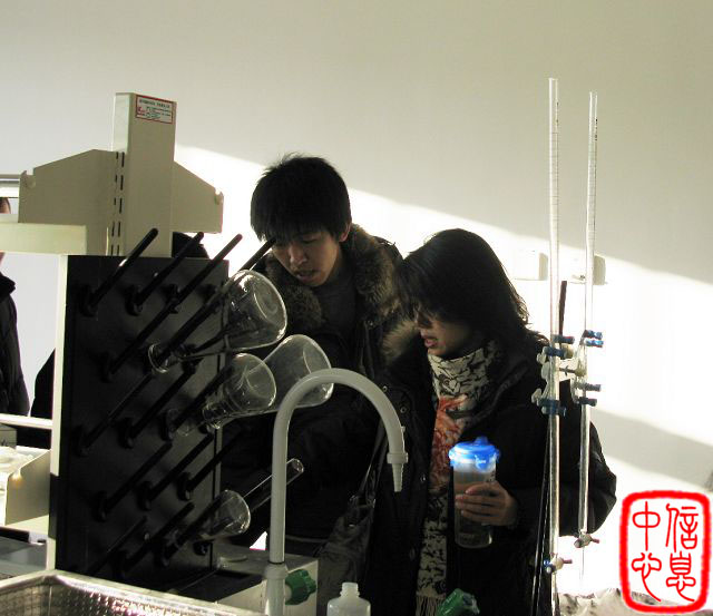 在实验室中两位老师向同学们介绍各种相关仪器的主要用途及注意事项,同学们认真的记录,全身心的投入。接着,两位老师带领同学们到实验基地进行调查,贾老师和段老师细心地向同学们介绍各种花卉的名称、成长过程以及所需条件,并且耐心地解答同学们的所提出的疑问。