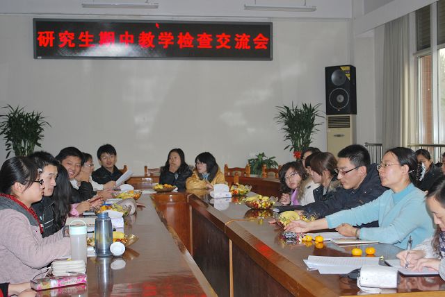 按照学院检查工作安排,2010年11月19日下午在教B209举行了植科学院全体研究生座谈会。座谈会由副院长王绍辉老师主持,研究生辅导员贾慧敏、研究生秘书吴春霞及全体研究生参加了座谈会。