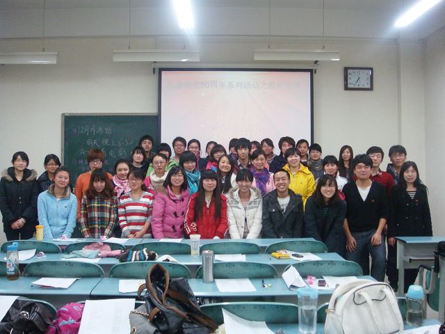 12月13日晚6:30,William威廉英国植保本科生党支部在教B110举行了“纪念建党90周年”唱红歌系列活动之“唱响东方红,歌颂我中华”。
