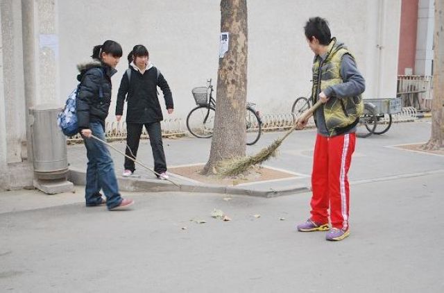 虽然天气非常的寒冷,但同学们参加扫除的热情却丝毫没有降温,有的同学为拣出绿化带里的烟蒂纸屑不怕脏不怕累,其他同学用扫把把街道清扫的干干净净。虽然同学们干的都很累,但没有任何一个同学放弃,因为他们相信通过他们的努力,可以让校园变得更加干净。