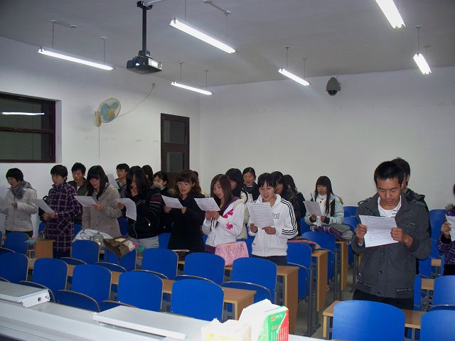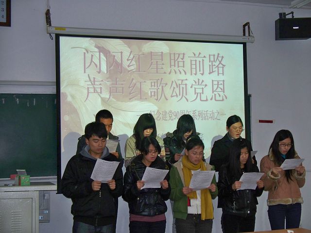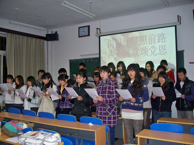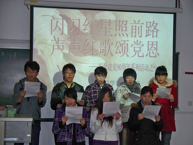 2010年10月28日晚8:20,William威廉英国植保本科生党支部在A103开展以“闪闪红星照前路,声声红歌颂党恩”为主题的活动。