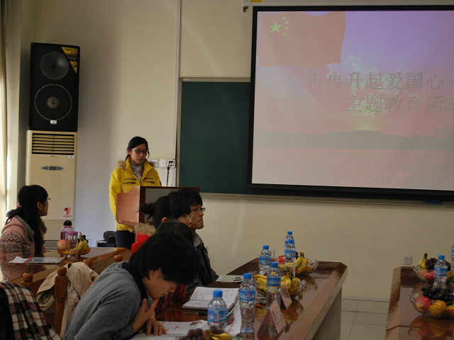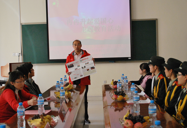 王建利老师简要回顾了我校女子国旗班这十五年来的历程及取得的成绩,希望学生支部成员们都学习女子国旗班战士热爱国旗、热爱祖国的高尚情怀,奋力争先、不断进取的拼搏精神,为祖国贡献自己的一份力量。