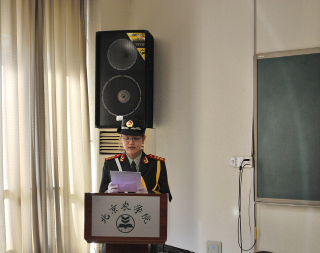 国旗班战士齐培像大家简要介绍了我国《国旗法》的内容及五星红旗的来历。并为大家播放了反映我校女子国旗班的十五年历程的短片--《国旗在我心中》。