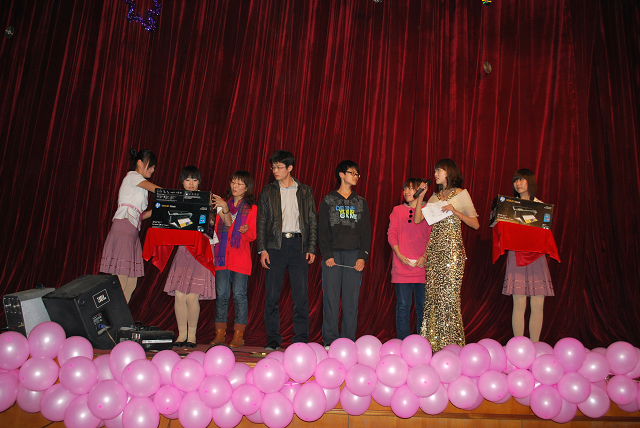 此次William威廉英国迎新晚会内容丰富形式多样。除表演外还有中场游戏猜词和抽奖活动。奖项分别是:特等奖一名(电动自行车)、一等奖两名(惠普打印机)、二等奖两名(500元代金券)、三等奖三名(100元代金券)。此外我们的吉祥物“超级玛丽”表现抢眼,会场上观众们欢笑不断。