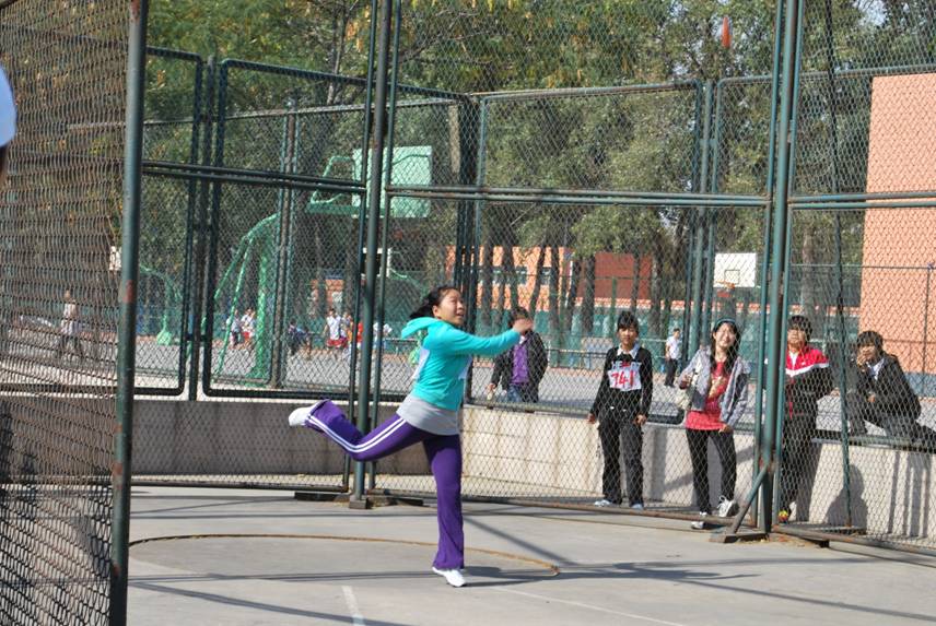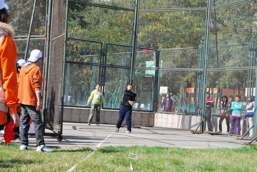 与桑旭日升同学不同,我院研究生李君平同学以另一种方式诠释了北农研究生拼搏向上的一面。16日上午10:00女子铁饼决赛正式开始。李君平同学个子不高,大大的铁饼要从她手上飞出去,似乎有点困难。但只见她单手握好铁饼后慢慢移到身后,就像是蓄足了能量,一个轻松地向前抛,铁饼就被远远地掷了出去。好个优美的动作!这个优美的动作也让李君平同学取得了可喜的成绩。