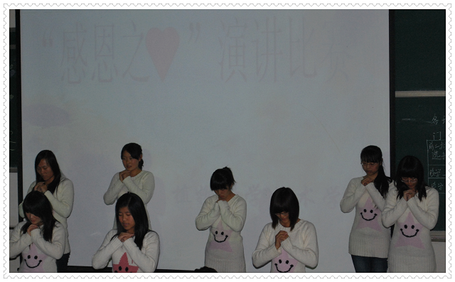 开赛前,植科2009级植物保护1班的同学带来的感恩之心手语表演,把大家带到了一个安逸祥和的气氛中。而上届感恩之心演讲比赛的冠军,给同学们带来一场既感动又深刻的演讲。15名参赛选手在柔美的音乐声中,用心吟诵,字字吐露真情,深刻的表达了自己的感恩之心,真挚的抒发了自己的情感。