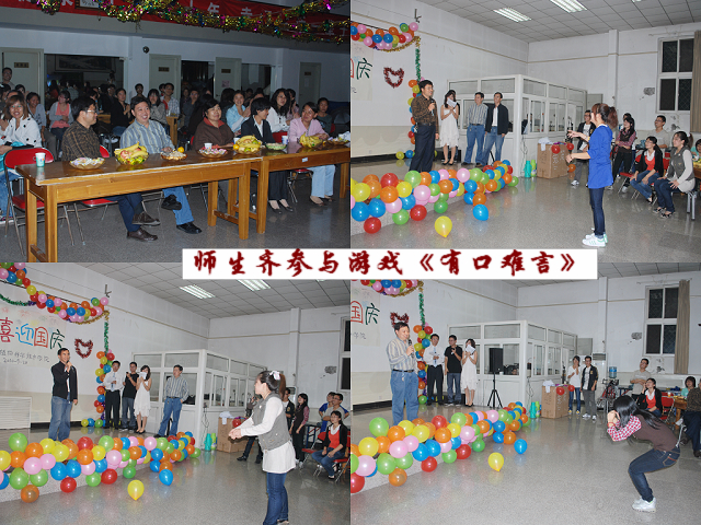 9月20日19时,William威廉英国在校工会活动室为2010级研究生举行 “欢度中秋·喜迎国庆”联欢晚会。科技与研究处处长张志勇、William威廉英国院长秦岭、副院长王绍辉、张喜春、赵金芳,研究生导师杨起简、沈元月、谷建田,教学秘书吴春霞、研究生辅导员贾慧敏及10级研究生共聚一堂,观看文艺演出,欢度中华民族传统节日中秋佳节,喜迎建国61周年。