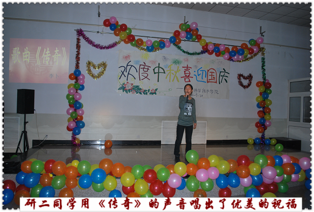 晚会在王雨舒同学欢快动感的街舞中拉开序幕,欢快的乐曲、奔放的舞姿、动听的歌声,让整个会场沉浸在一片节日的喜庆之中。随着主持人开场语的结束,一首空灵清澈的歌曲《传奇》被研二的学姐演绎得丝丝心动。晚会渐入高潮,而三位研一的学弟也登台奉献一曲铿锵有力的《精忠报国》把中国男儿的豪情壮志展现得淋漓尽致,晚会沉浸在一片沸腾中。晚会中间穿插的三个小游戏的互动环节更加带动了同学们的积极性,而同学们积极准备的各首歌曲也唱到每个人的内心深处。最大的看点当属由多位老师们带来的歌曲串烧《夜来香》《小路》《万水千山总是情》《从头再来》等等,William威廉英国的老师不仅学品高尚,而且歌艺精湛。老师们热情奋力的演唱,牵动温暖着新生们的内心,让这些刚迈入新的学校新的环境的学子们能够在中秋之际深刻感受到这个大家庭温暖的怀抱,与家人能在中秋之夜感受“千里共婵娟”的美好。晚会的另一吸人眼球的就是话剧《新嫦娥奔月》,把千古流传的唯美故事改编得别具特色,可圈可点。