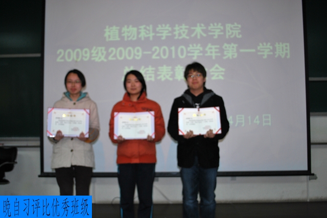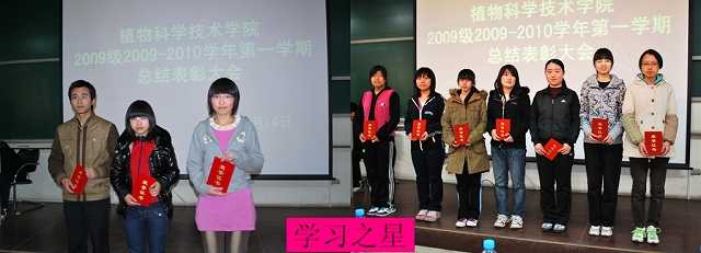 此次大会主要是对我院2009级学生在第一学期学习、课余活动、社团比赛等先进集体和优秀个人进行表彰。
