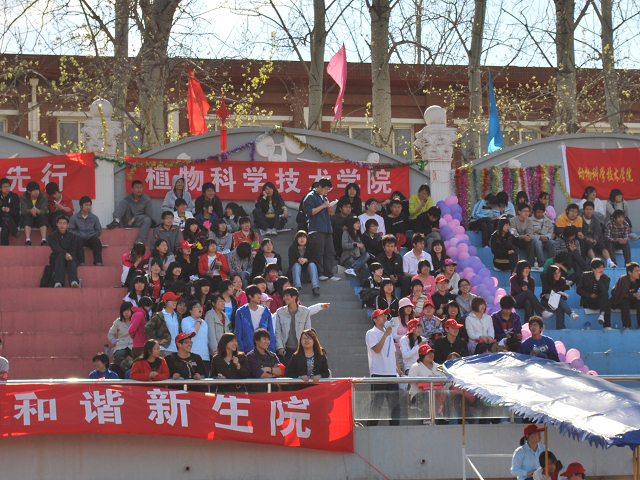 古希腊人创造“圣地”奥林匹亚,象征和平和友谊。今天,我们齐聚北农学府的运动场上,传承并展现着这古老的文明。看那,植科学院服务台上,热情的服务工作者正在为运动员递水、鼓劲,观众席上人声鼎沸,喊声震天,每位同学都希望用自己的声音为运动员们加油鼓劲。欢呼声呐喊声响成一片,热闹非凡。