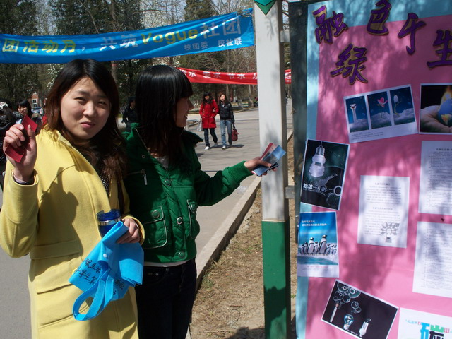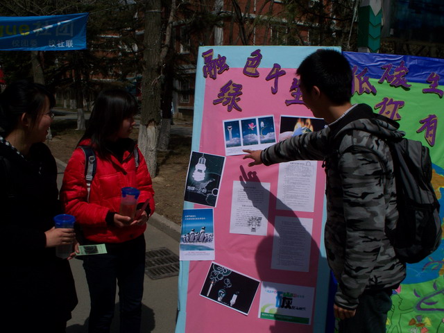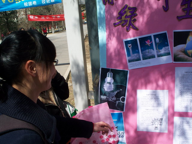 支部成员制作了“融绿色于生活”、“低碳生活、有你有我”为主题的展板,粘贴了丰富生动的图片、照片和一些宣传材料,同时为校内师生发放免费环保袋,并亲手制作印有“低碳生活”知识的书签发给来往的同学,支部党员还积极为大家介绍低碳生活的相关知识,通过支部成员的努力号召同学们参与到低碳生活中来,让每个人认识低碳生活,走进低碳生活,实践低碳生活。希望通过活动宣传,能够使更多的人关注低碳生活,并付诸于行动,为我们赖以生存的地球创造更美好的明天做出自己的贡献。
