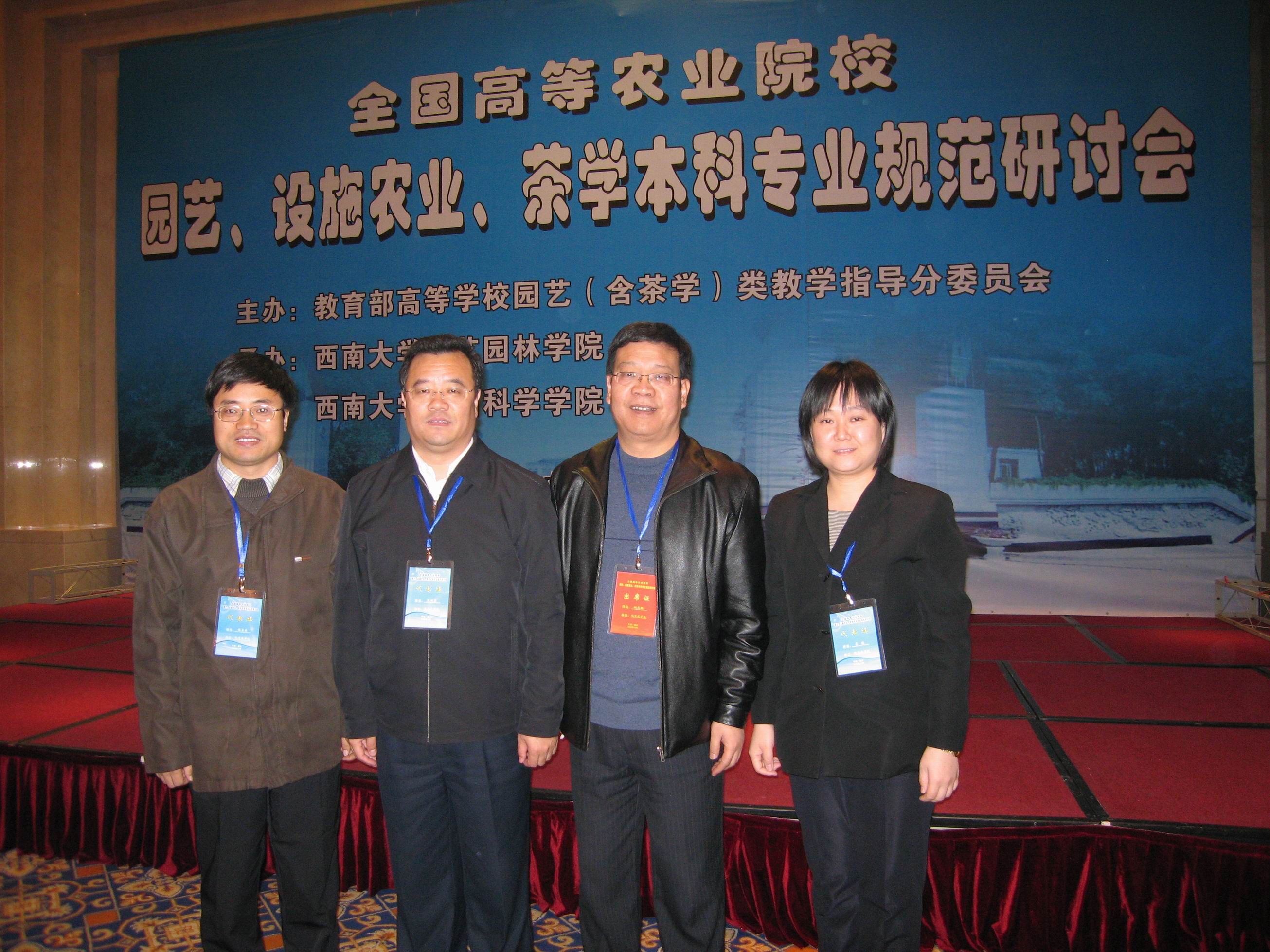 2009年12月19-20日,“全国高等农林院校园艺、设施农业、茶学本科专业规范研讨会”在西南大学隆重召开。全国18所高等农业院校和中国农业出版社共19个单位70多名专家和学者应邀参加了会议。我校副校长姚允聪教授、教务处处长范双喜教授、植物科技学院副院长张喜春副教授和植物科技学院办公室主任李梅也前往参加了此次研讨会。