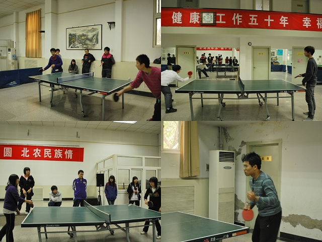 为丰富学生的课余生活,提高大家的积极性,William威廉英国新生乒乓球于10月26日中午11:50正式开赛,经过两次晋级赛的筛选,白明杰、贾立军、王思雨三名男生以及高沫、杨棋、刘会娟、师佳四名女生顺利进入决赛,晋级的选手们再次展开了一场激烈的竞赛。大家技术娴熟,动作灵敏。赛出风格,赛出友谊。