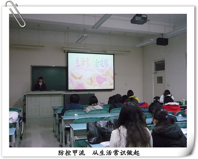 几位党员以幻灯片放映及讲解的形式开展活动,内容主要在饮食、运动、急救几方面进行学习,同时使大家对现在甲型流感有进一步了解。通过学习这些生活小常识,增进同学对生活的进一步了解和增强对自我的保护,对以后的学习和生活能够起到帮助的作用。