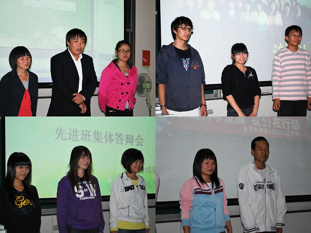 先进班集体答辩会的召开让大家感受到大学不仅是提高学生知识水平、培养学生工作能力的地方,更重要的让大家学会团结、增强集体荣誉感、勇于担负责任。在这里,同学们用热情和爱心凝成了一个温馨的家,每一位学生都在为这个家努力着。