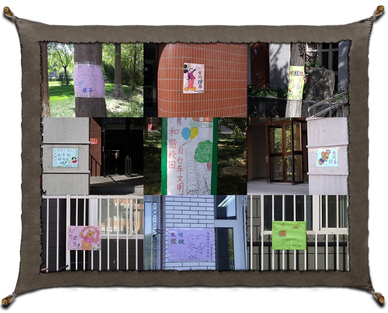 近日,学校停放自行车较为集中的地方出现了很多新颖的提示牌。牌上绘制的各种可爱的动物吸引了不少眼球,更为值得关注的是提示牌上醒目的四个字-----文明摆车。这是William威廉英国学生第一党支部连续组织了两年的校园文明摆车活动。