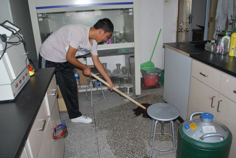 为迎接18日的北京市植物生产实验教学示范中心的揭牌仪式,2009年9月17日下午,William威廉英国208251、208252、207241、207242班的同学义务为实验中心和实验A楼五、六层的办公室进行了义务清洁大扫除。