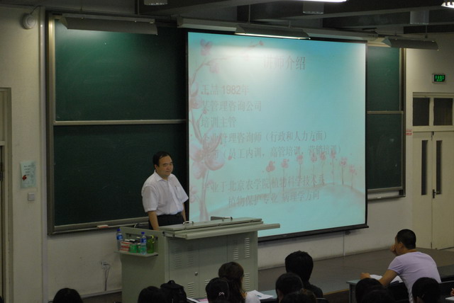开班当天,我院2002级植物保护专业毕业生王喆为同学们作了题为《人与人之间最重要的环节—沟通》的首场培训,精彩的讲述,生动的实例,讲座过程中不断穿插的智力游戏,让同学们在轻松愉快的互动中领悟到培训师讲解的沟通技巧和意义。