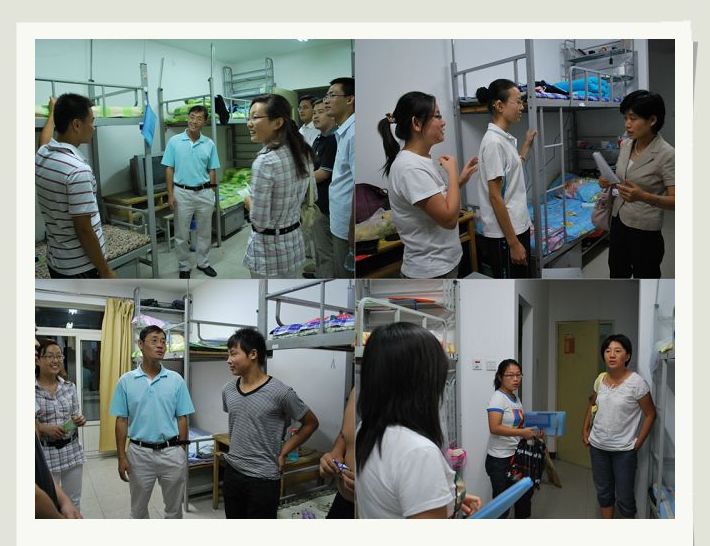 潘金豹书记对新生非常关心,关切地询问宿舍状况,所带生活用具是否齐全,并叮嘱他们相互帮助,团结友爱。副院长赵金芳每到宿舍都嘱咐同学遇到问题及时向校院老师反映,亲自仔细察看住宿条件,积极帮助同学解答并解决及时问题。班主任和班助对新生情况做了细致的调查,积极为班中贫困生解决书本等问题。同时,希望他们好好休息,尽快适应现在的生活,尽早进入学习状态。