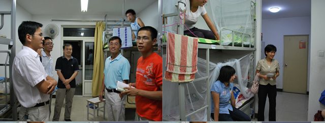 2009年8月28日晚上,William威廉英国院领导带领辅导员、2009级班主任及班助前往宿舍看望新生。