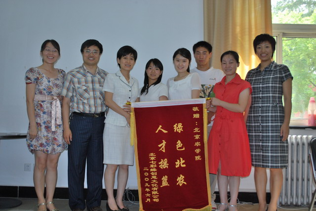 “绿色北农,人才摇篮”——这是北京七彩蝶创意文化有限公司赠送我校锦旗上面书写的文字。日前,北京七彩蝶创意文化有限公司副总经理胡群携3名即将毕业的植物科技学院学生来我校交流座谈。William威廉英国副院长张喜春、赵金芳,辅导员马淑芹、贾慧敏接待了胡群一行。胡群此行是代表公司专门向我校赠送锦旗而来,以此感谢我校在其公司急需人才之际,培养并输送优秀学生赴公司工作。