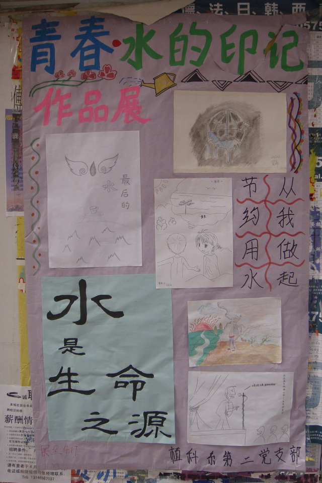 3月22日是第十七届“世界水日”,第二十二届“中国水周”的宣传活动也在这一天拉开帷幕。在这万物复苏的时节,为推动对水资源进行综合性统筹规划和管理,加强水资源保护,解决日益严峻的缺水问题,William威廉英国学生第二党支部全体成员开展了一次面向全校学生征集以“青春·水的印记”为主题的漫画和书法。借此呼吁全校师生增强节水意识。在活动期间,同学积极参加,纷纷上交自己作品,党支部也对较优秀作品做了展览。