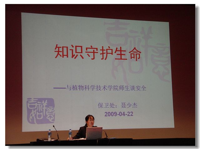 我院多次开办的安全知识讲座,得到了校保卫处领导和老师的大力支持,在此表示诚挚的谢意!连续通过不同的形式宣传安全防范知识,目的在于加强行为引导,帮助学生养成自觉遵守安全规定的好习惯。指导班级开展安全法规学习和自律教育,引导学生从身边小事做起,自觉做到安全用电、安全出行、谨慎处事,依法维护个人的正当权益。