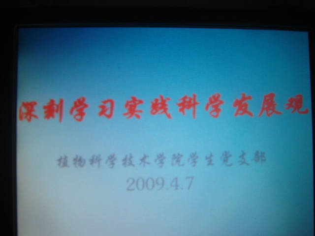 4月7日晚9时,为加强学生党员、重点培养对象、入党积极分子对科学发展观的理解,增强贯彻落实学习实践科学发展观的自觉性和坚定性。植物科技学院学生第一、二、三党支部在学习调研阶段组织全体支部成员集中学习科学发展观的理论知识,学习观看了《党课1小时》北京支部生活专辑。