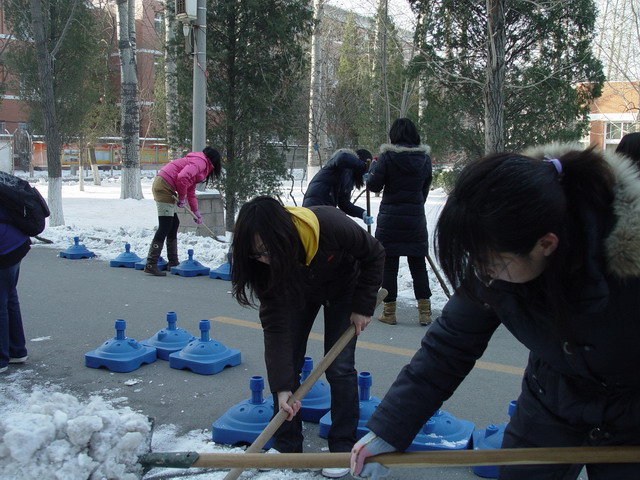 2009年2月20日早8:00,北京第二场瑞雪虽已化去不少,可是路边的积雪仍影响着我校师生的出行和安全,植物科技学院207211班全体同学自发组织了一次“方便他人,快乐你我”的扫雪活动。